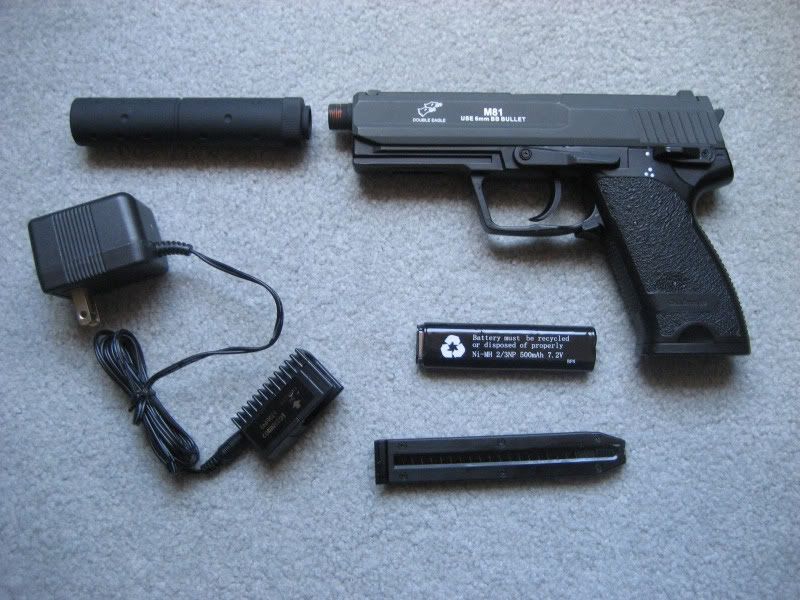 For $45 + Shipping You get 1 DE M81 USP Tactical in like new condition, 1 30rd USP AEP magazine, 1 7.2V 500mAh NiMH AEP battery, and 1 AEP battery charger.