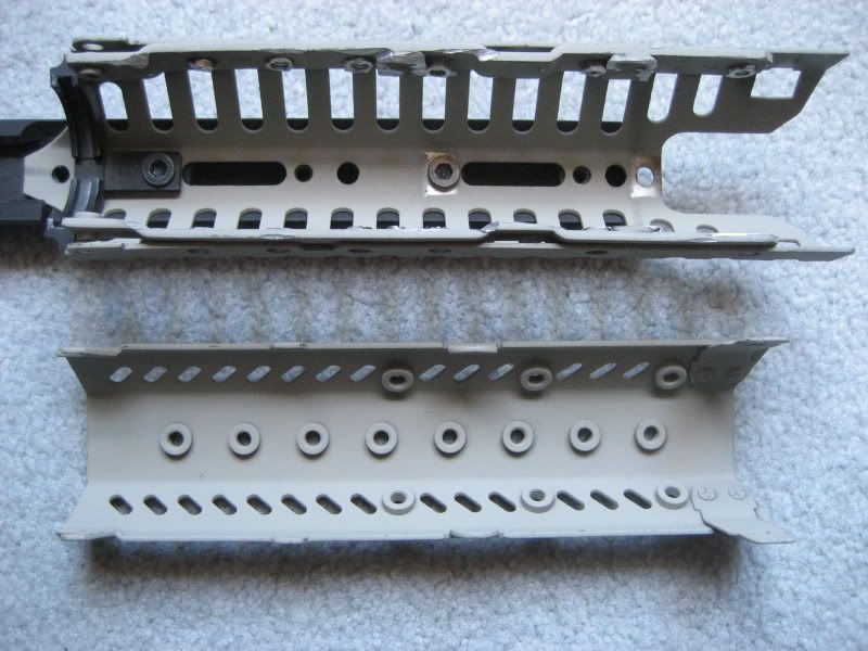Lastly I have a high quality (similar to King Arms) replica VLTOR CASV-EL with intact trademarks. It has been custom painted FDE and has been modified to hold an Intellect 9.6V 2000mAh butterfly battery. It should also be able to house small Lipo batteries, although I haven't tested this out. The CASV is in excellent condition and includes all the original rails and screws.